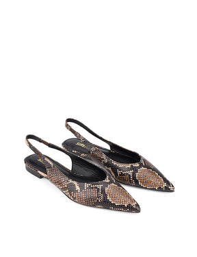 Lorie Slingback Flats - Brown Snake Leather