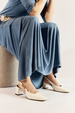 Renee Slingback Block Heels - Chalk White Patent Leather