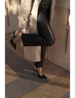 Crafted from luxurious leathers, this is a capsule wardrobe piece to mix and match with countless outfits. Available in all neutral tones for added versatility. Featuring a sleek and modern pointed toe, adjustable buckle fastening and 10cm stiletto heel.