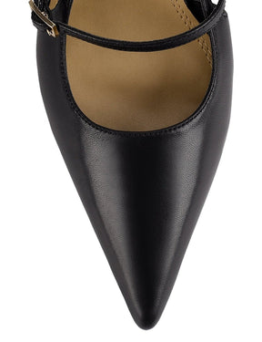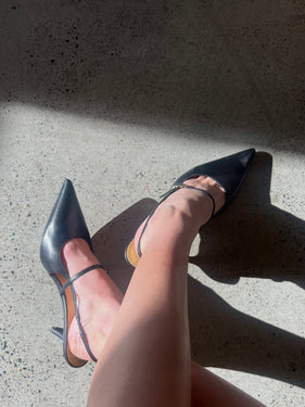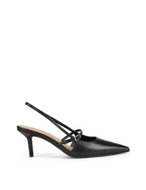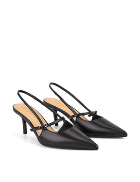 York Slingback Heel - Black Leather
