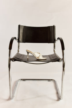 Nicola Satin Knot Mules - Ivory White Satin