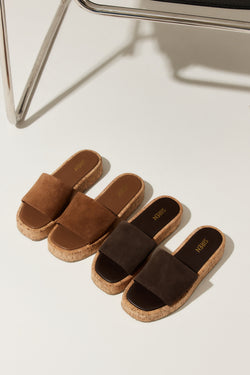 Detroit Flatform Slides - Tobacco Brown Suede & Cork
