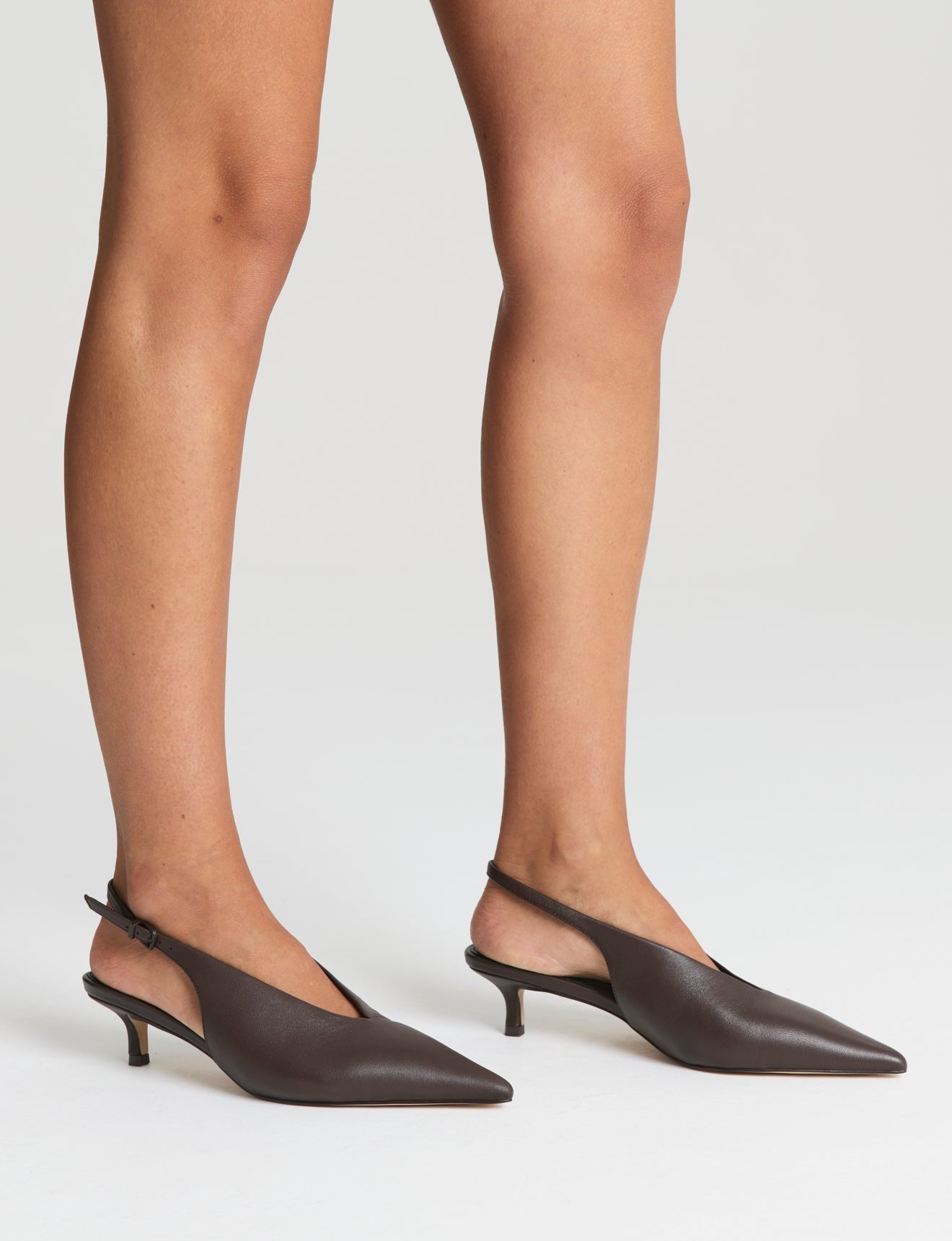 Fly Point Toe Slingbacks - Chocolate Brown Leather