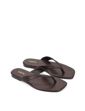 Pre-order: Evita Flat Thongs - Chocolate Brown Leather