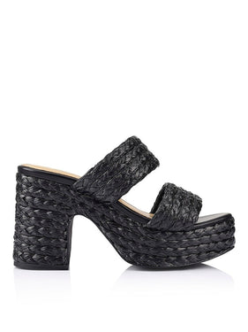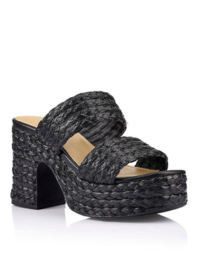 Siren's 'Mingus' is the perfect platform heel this season. Crafted from a thick rope raffia featuring a block heel and front straps.