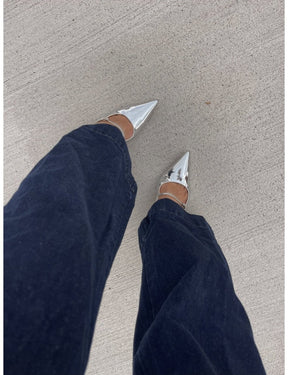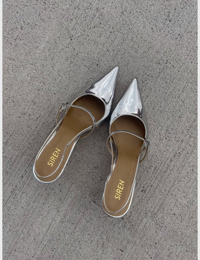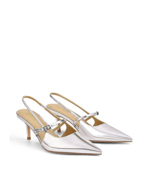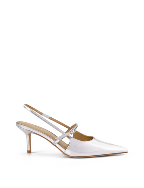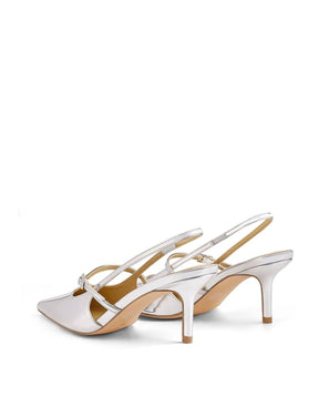 York Slingback Heel - Silver Metallic Leather